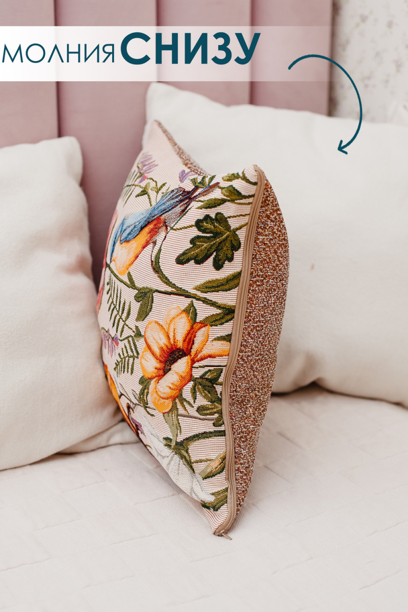 Односторонняя наволочка декоративная размером 38х38 см(+-3см). У наволочки гобеленовой молния находиться в нижнем шве изделия. Уход - машинная стирка при 30 градусах на деликатном режиме с закрытой молнией. Не смешивать при стирке с другими тканями. Утюжить на среднем температурном режиме. При правильном уходе гобеленовая наволочка декоративная прослужит долгие годы в неизменном состоянии: не линяет, не дает усадку. Качественная, удобная в использовании, устойчивая к истиранию красок и деформациям при стирке, такая декоративная наволочка гобеленовая будет долгие годы радовать красотой и эстетичностью! Обратная сторона наволочки из однотонной гобеленовой ткани. Прекрасный рисунок на наволочке декоративной гармонично дополнит самый изысканный интерьер, привлекая внимание своей теплотой и оригинальностью. Мягкий материал необычайно приятен и прочен. Гобеленовое изделие так же подойдет в качестве ПОДАРКА вашим родным, друзьям и близким.