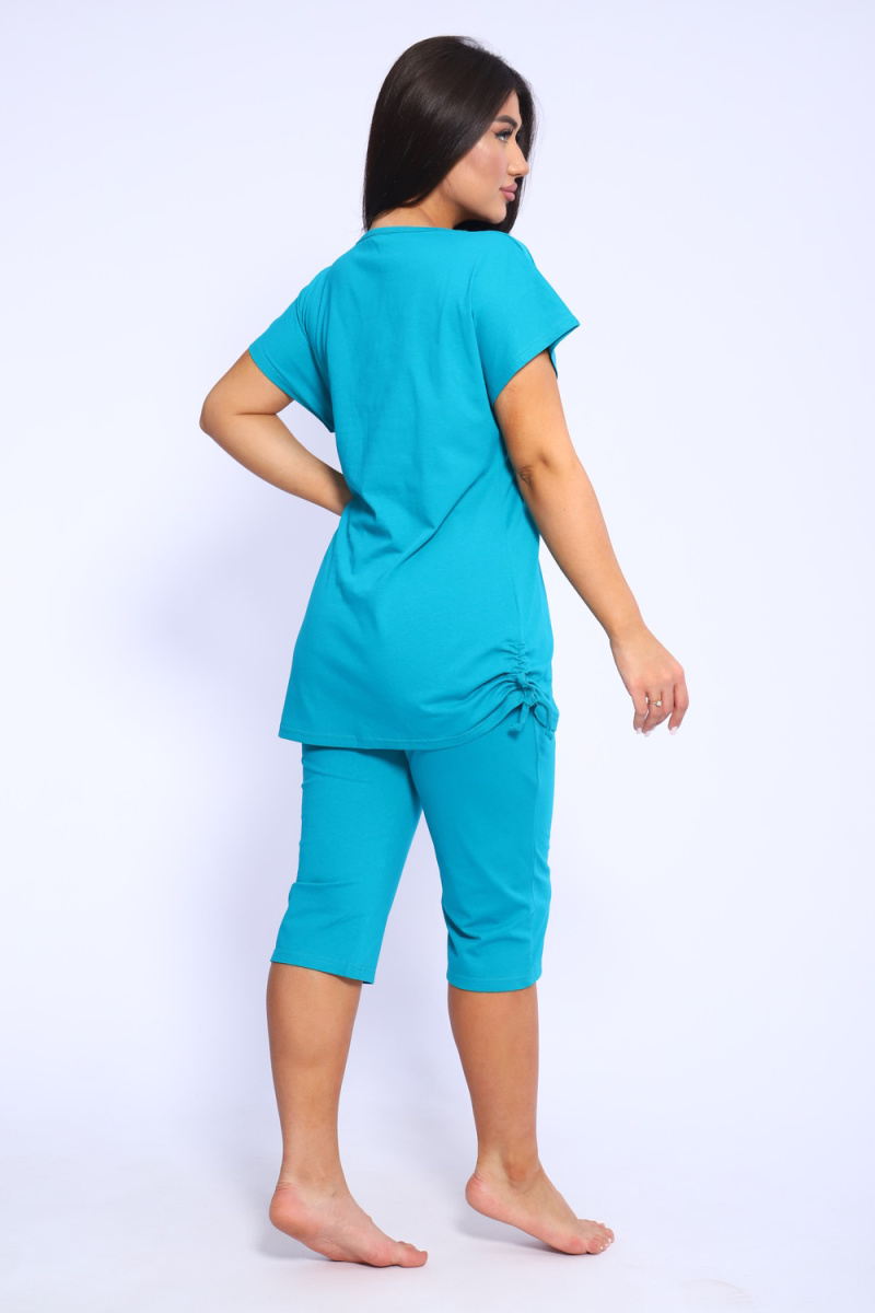Представляем вашему вниманию женский домашний спортивный костюм, который идеально подходит для комфортного времяпрепровождения дома и на даче. Этот комплект включает в себя удобную футболку и стильные бриджи, которые глубоко заботятся о вашем комфорте. Изготовленный из мягкого и дышащего материала, он отлично подходит для расслабления и активного отдыха. Футболка обладает лаконичным дизайном, что добавляет универсальности, а бриджи прекрасно сочетаются с ней, создавая непринужденный ансамбль. Такой набор станет идеальным выбором в качестве домашней пижамы, позволяя вам чувствовать себя уютно и привлекательно.